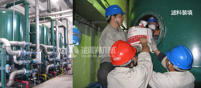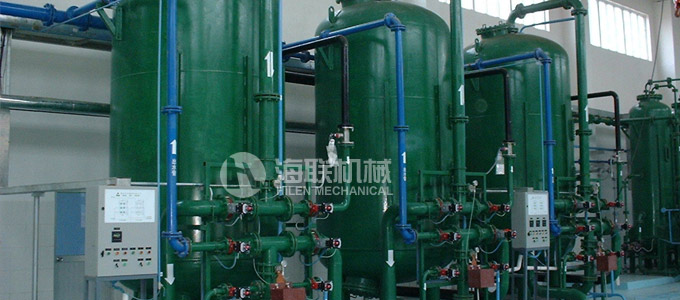 樹脂在未裝進(jìn)交換器之前,首先應(yīng)進(jìn)行篩選,再用百分之8~10的NaCI溶液浸泡20小時,放掉食鹽水,用水沖洗樹脂,自至出水不呈黃色為止;蛴冒俜种5的 HCI溶液浸泡2~4小時,放掉酸液后,用水沖洗樹脂至排水接近中性為止。將樹脂裝入設(shè)備到規(guī)定高度,樹脂裝好后進(jìn)行一次反沖洗。