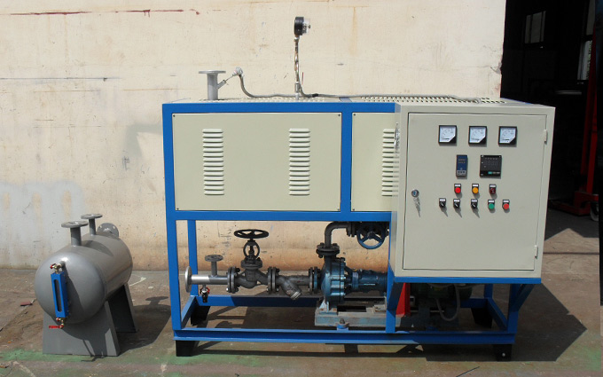 電加熱導(dǎo)熱油爐概述 電加熱導(dǎo)熱油爐是一種新型、效率高并且節(jié)能,低壓(常壓下或較低壓力)并能提供高溫?zé)崮艿奶胤N工業(yè)爐,是一種以電為熱源,導(dǎo)熱油為熱載體,利用循環(huán)油泵強(qiáng)制液相循環(huán).將熱能輸送給用熱設(shè)備后.繼而返回重新加熱的直流式特種工業(yè)爐,如此周而復(fù)始,實現(xiàn)熱量的連續(xù)傳遞,使被加熱物體溫度升高,達(dá)到加熱的工藝要求。