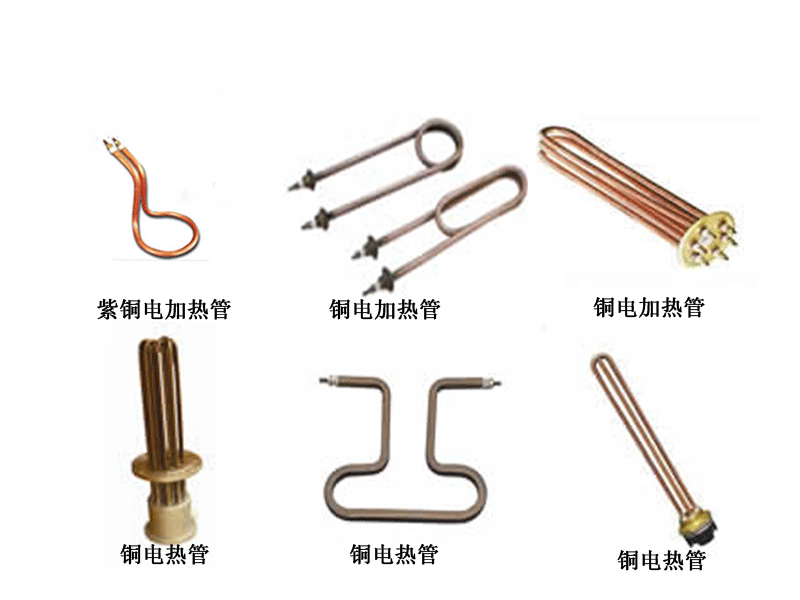 二.銅電熱管的性能: 銅電熱管是在金屬管中放入電熱元件,并在空隙部分緊密填充有良好耐熱性、導(dǎo)熱性和絕緣性的結(jié)晶氧化鎂粉,在經(jīng)其它工藝處理而成。它具有結(jié)構(gòu)簡單,機械強度高、熱效率高、可靠、安裝簡便、使用壽命長等特點。廣泛適用于各種硝石槽、水槽、油槽、酸堿槽、易熔金屬熔化爐、空氣加熱爐、干燥爐、干燥箱、熱壓模等裝置。